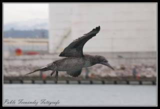 Hola, amigos. Éstos días, en los que parece que, por fín, el invierno ya llegó, estamos teniendo fuertes vientos de Oeste o Suroeste, lo que sumado al mal estado de la mar, provoca que las aves marinas busquen refugio en puertos y bahias.
